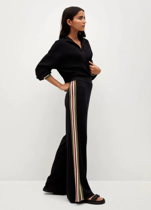 Лампасы на брюках добавляют образу дополнительные вертикали, за счет чего ты зрительно становишься выше и стройнее.