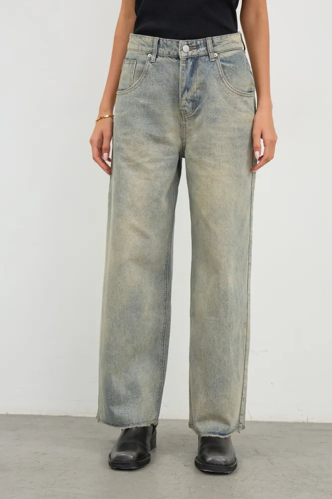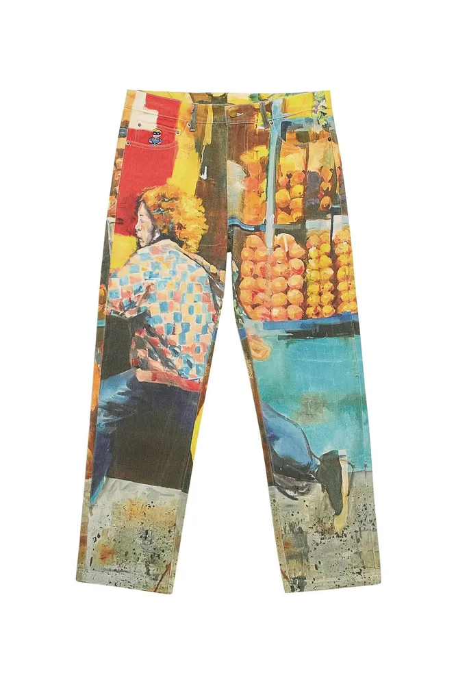Хотя классические прямые джинсы (некоторые бренды называют их «сигариллами») тоже не теряют популярность, так что их тоже стоит примерить. И обязательно, обязательно присмотрись к брюкам с необычными принтами — фишка сезона! Самые актуальные — это, конечно, эффект ржавчины и состаренного денима, который как будто полежал пару дней в луже:) Об этом феномене мы, кстати, не так давно рассуждали.