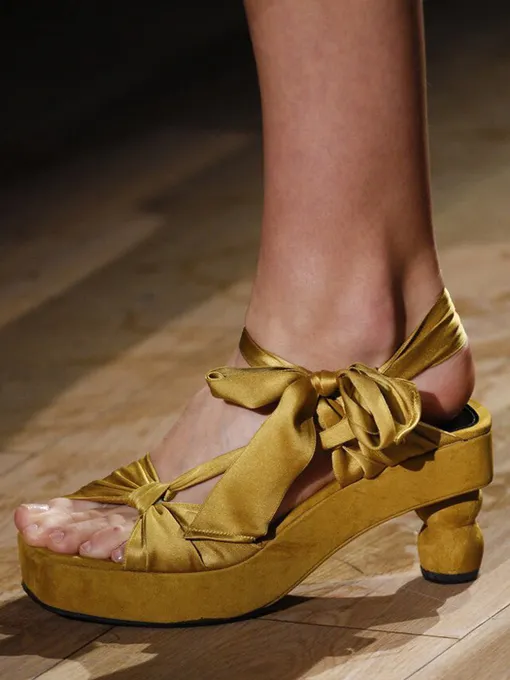 Он же «киттен хиллс». Маленький каблучок снова на модной высоте. Новая вариация классических лодочек, босоножки с перьями или широкими лентами – на подиуме были замечены самые разные модели на каблуке высотой не более 5 сантиметров. Как альтернатива убийственным шпилькам – почему бы и нет?