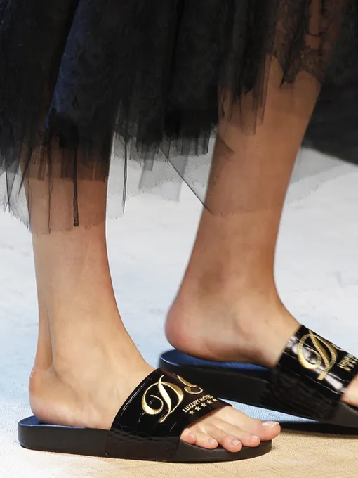 Шлепанцы уверенным шагом идут в новый сезон. Да, такая обувь часто смотрится простовато, но многое зависит от самой модели и сочетания. Шлепанцы неплохо дополняют бельевые образы, лаконичную классику и наряды в стиле спорт-шик. Вместе с мюлями и прочей обувью без задника они четко узаконивают тренд на открытые пятки.