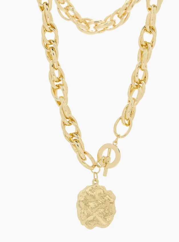 Яркие, акцентные украшения — мастхэв любой итальянки. Для тебя мы подобрали массивное золотистое колье, которое органично смотрится и с шелковой блузой, и с базовым топом.