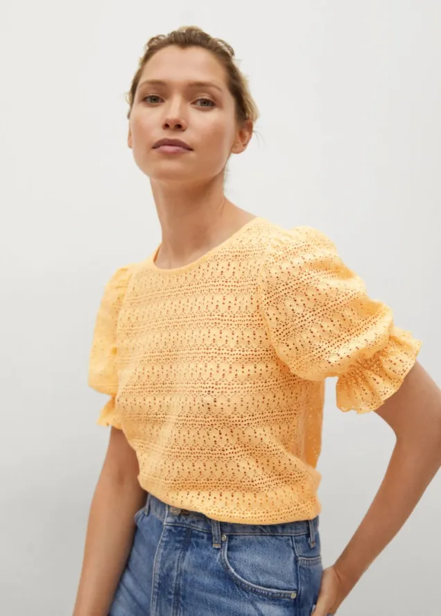 Хит сезона — вязаный топ трендового желтого цвета. Он стильно смотрится и с джинсовыми шортами, и с брюками палаццо в пол, и с летящими юбками.