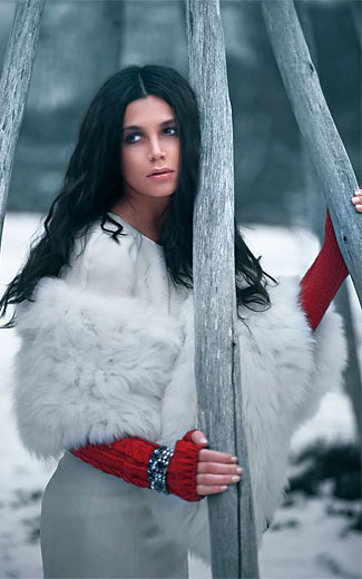 ![]() | Дубленка, Patrizia Pepe; платье, Amen; меховая шапка, La neige; рукавицы из норки, Céline; сапоги, Mascotte |