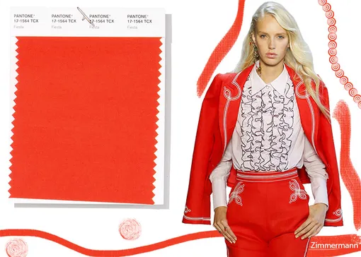 В теплом красно-оранжевом много энергии и страсти, как в танце в честь которого он назван. Оттенок отлично подойдет яркому контрастному типажу, но более мягким цветотипам не стоит сразу от него отказываться – у лица цвет можно успокоить более мягкими оттенками, например светлой блузкой, как на иллюстрации.