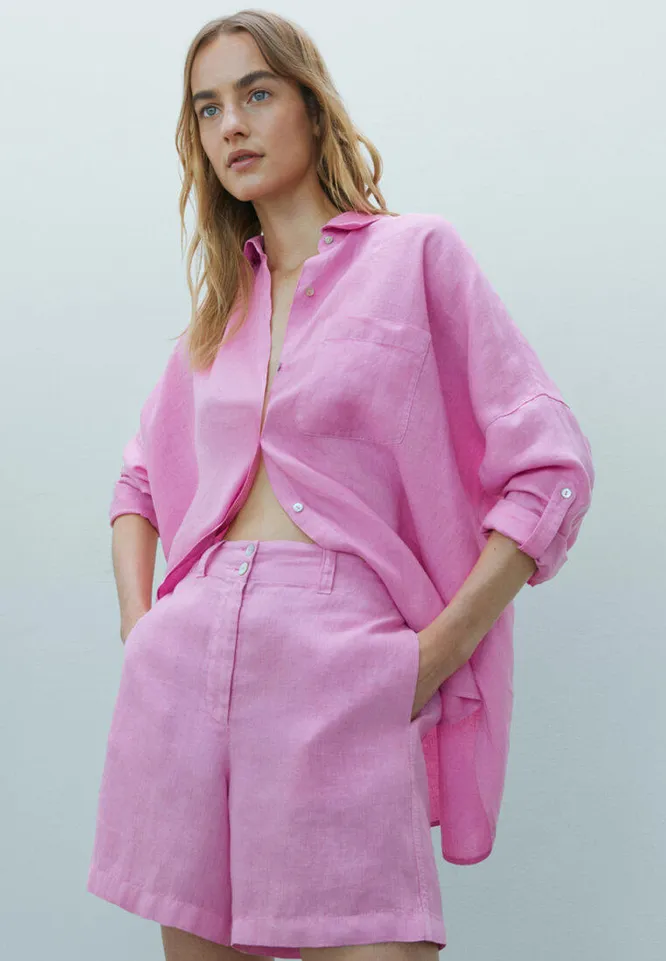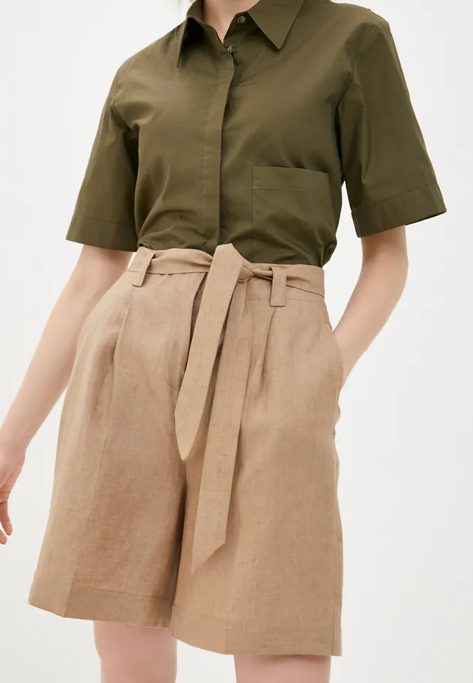 Альтернатива плотным джинсовым шортам — легкая модель изо льна и хлопка.
