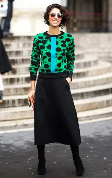 Свитер насыщенного цвета или с рисунком – отличный способ привлечь внимание к спокойному классическому образу. Монохромная миди-юбка или классические брюки со стрелками в паре с ярким свитером будут смотреться расслабленно и интересно.