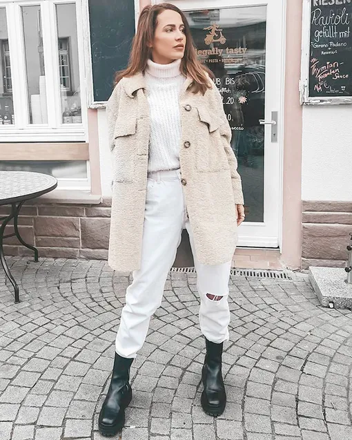 Если летом белыми джинсами никого не удивишь, то осенью их носят единицы. Хотя в сочетании с теплым кардиганом, пальто и ботильонами они могут стать основой свежего актуального образа. Самые трендовые модели — широкие и прямые, эпоха скинни подошла к концу.