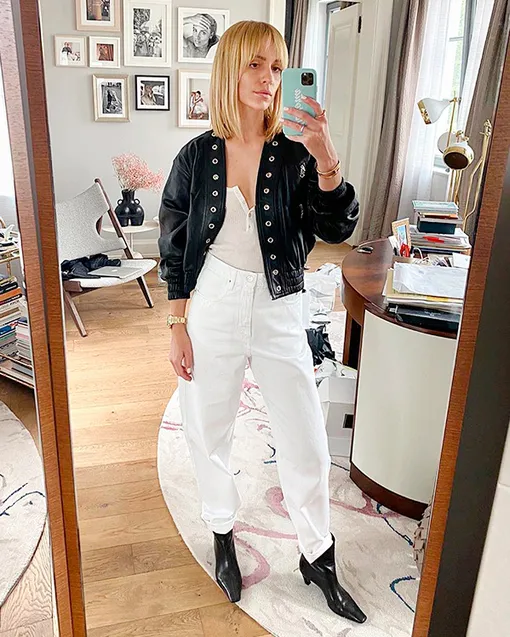 Единственный минус белых джинсов — они визуально подчеркивают лишний объем, поэтому выбирай именно ту модель, которая подходит по типу фигуры. Кстати, ты всегда можешь скорректировать пропорции правильно подобранным верхом.
