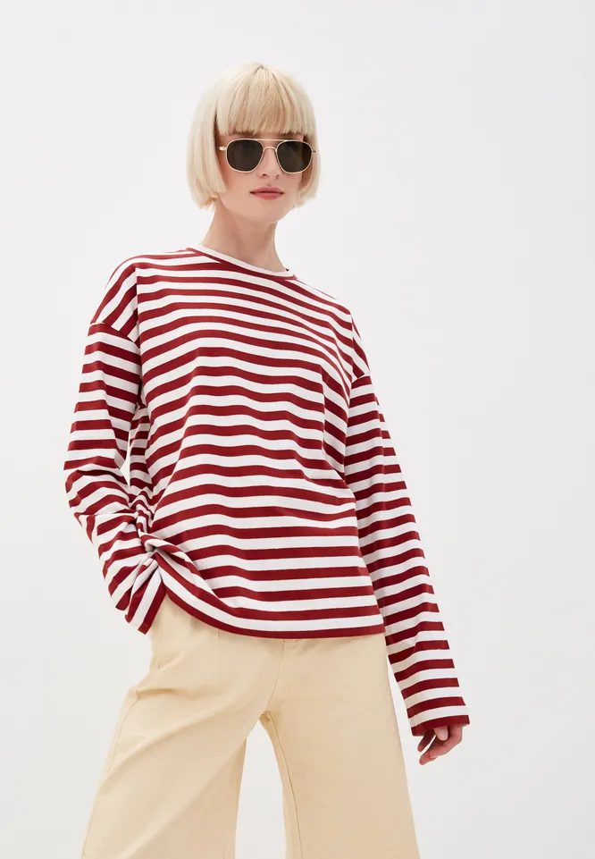Тельняшка пригодится в гардеробе в любое время года. Несмотря на свою простоту, она всегда смотрится стильно и добавляет образу особой шарм. В этом сезоне актуальны как классические модели, так и варианты свободного кроя. Что касается цветов, то наиболее универсальны лонгсливы с черной, синей, голубой, серой, бордовой полосками.