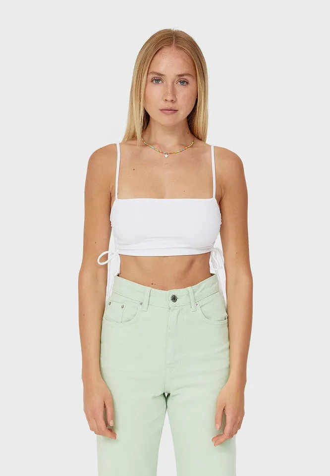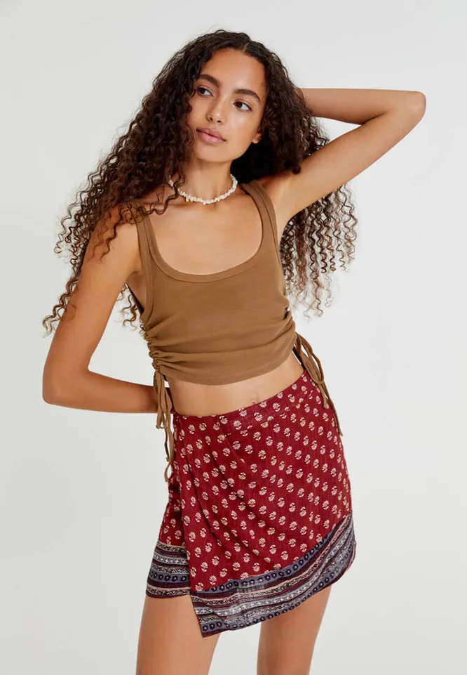 Этот кроп-топ стильно смотрится с пестрыми пляжными саронгами и шортами. В городе его можно носить с летящими атласными юбками или джинсами.