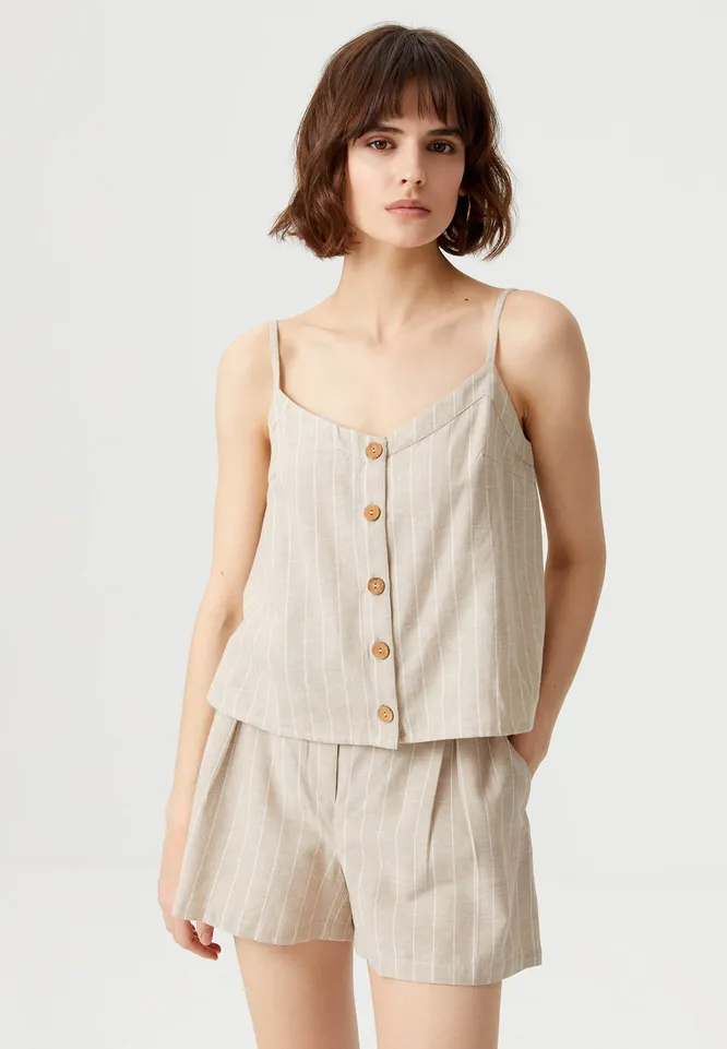 Для расслабленных луков подойдет минималистичный хлопковый топ в полоску. Идеальное решение в жаркую погоду!