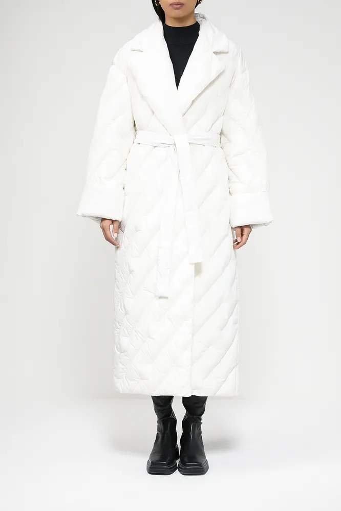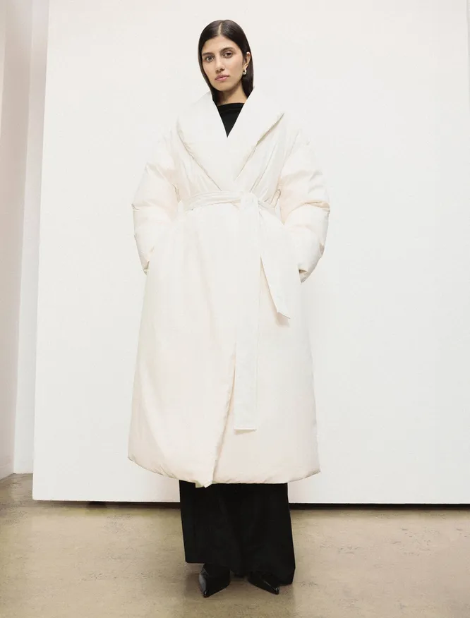 Вообще на зиму-2024/2025 дизайнеры предложили не просто длинные, а экстрадлинные пуховики. В них можно завернуться почти с головой, как в теплое стеганое одеяло – такой и был замысел. Другое дело, что на подиуме носить верхнюю одежду, касающуюся пола, можно, а в обычной жизни – нет.