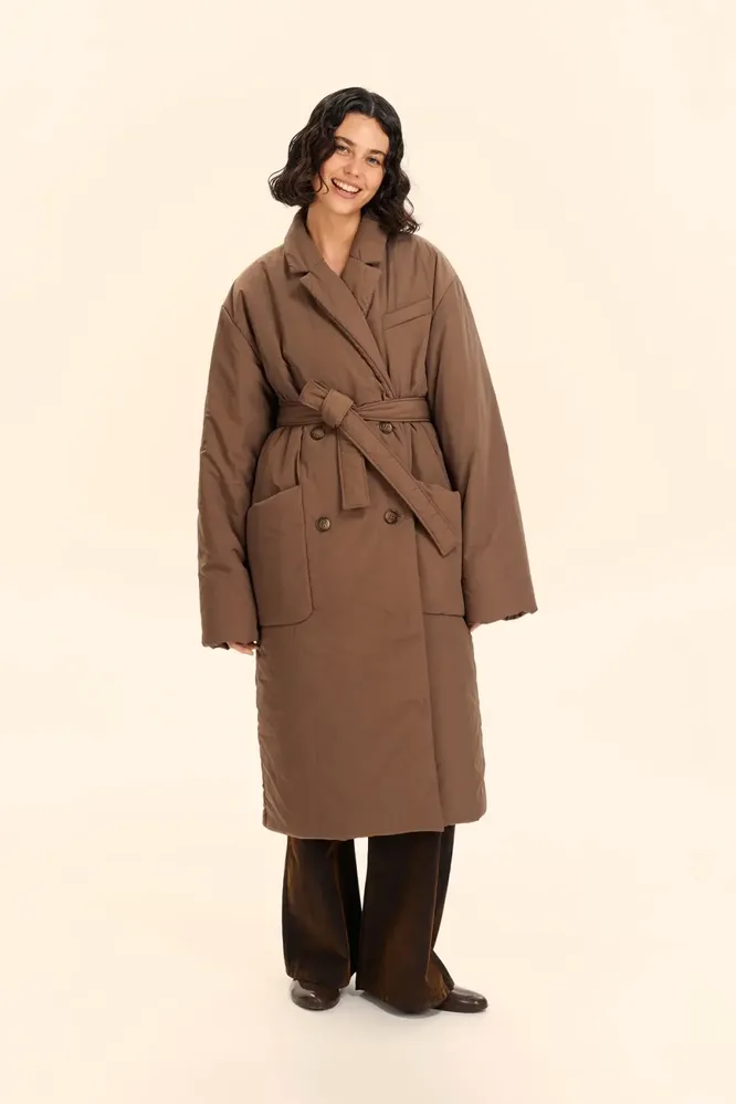 Что еще нужно знать о модных пуховиках? Актуальны сейчас модели с крупной стежкой, монохромные (это всегда выигрышно), скроенные под классическое пальто с лацканами или прямые, слегка оверсайзные. Пуховики с поясом тоже котируются, только не перетягивай талию слишком сильно в попытке сделать фигуру более стройной (частая привычка): так ты деформируешь силуэт и образ станет неопрятным.