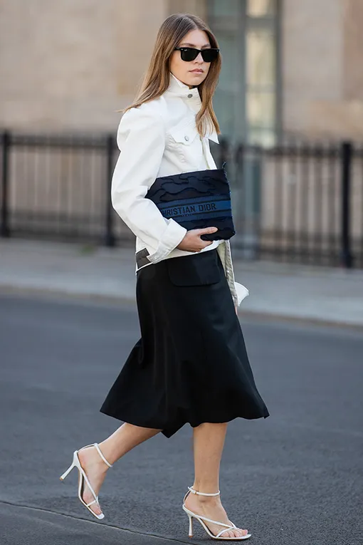 Добавляем сантиметры роста за счет каблуков, и никто не посмеет тебя упрекнуть в ночном заказе наггетсов. Ну разве что курьер, но кто ему поверит. А если выберешь туфли нюдового оттенка (в тон кожи), то еще сильнее вытянешь силуэт.