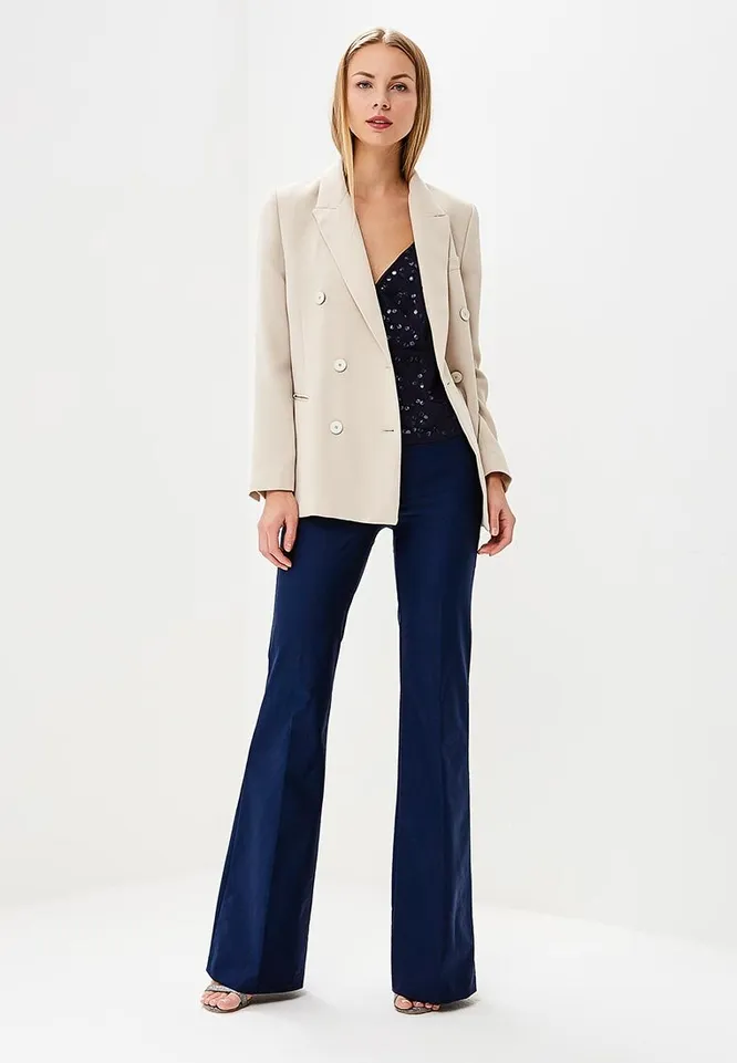 Беспроигрышный вариант для девушек с любым телосложениям. Благодаря особенностям кроя такие брюки сглаживают массивные бедра, визуально удлиняют ноги и делают талию более выразительной. Носить можно как с облегающим, так и объемным верхом, заправив его за пояс. Дополнить наряд поможет удлиненный свободный пиджак в тон — он не будет резать силуэт, а, напротив, поможет создать единую, сплошную линию, вытягивая таким образом фигуру еще сильнее.