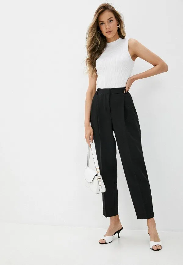 Брюки-карроты помогут тебе подчеркнуть женственные изгибы и сделать фигуру более соблазнительной. Высокая посадка акцентирует талию, делая ее визуально более тонкой, свободный крой на бедрах скрывает объем, а сужающиеся книзу штанины и защипы визуально вытягивают ноги, придавая силуэту изящный, стройный вид. Лучше варианта для девушек с типом фигуры «груша» не придумаешь.