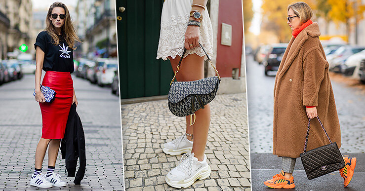 Если слишком яркие и трендовые кроссовки обязывают, то этот вариант призван помирить всё в образе. Обычно это светлые модели с яркими акцентами — вставками или шнуровкой. Они отлично подойдут романтикам — для спокойных образов и натуралам, которые любят смелые сочетания.