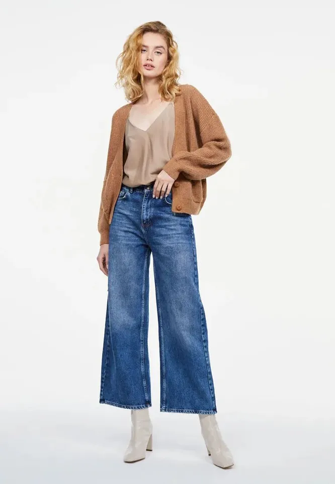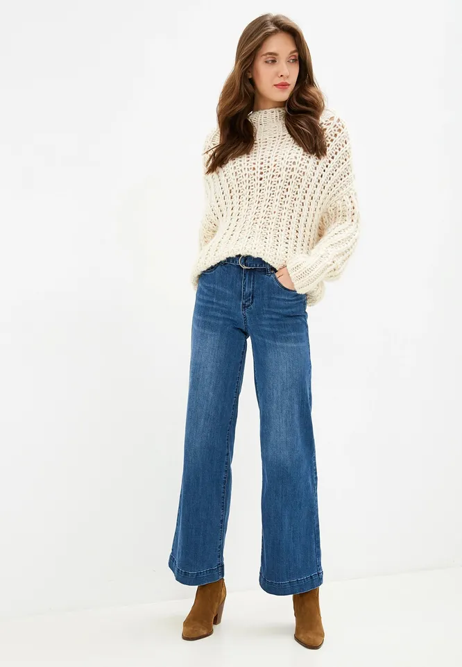 Классические синие модели идеальный вариант как в будни, так и на выход. Они классно смотрятся в сочетании с объемным свитером, рубашками любых расцветок, водолазками, и воздушными блузами. Верх может быть как навыпуск, так и заправленный за пояс (для этого выбирай модели с высокой посадкой).