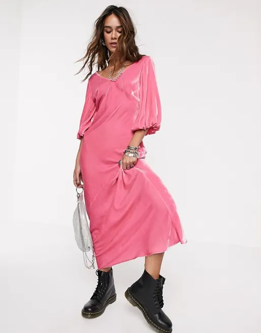 Если ты в душе бунтарка, смело выбирай для новогодней вечеринки макси-платье оверсайз кроя. Модель ярко-розовой расцветки будет круто смотреться на контрасте с грубыми ботинками, модными в этом сезоне. Чтобы подчеркнуть талию, повяжи на нее поясную сумку — она не только послужит отличным дополнением к образу, но и позволит твои рукам оставаться свободными.