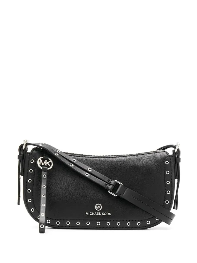Универсальная модель, которая гармонично сочетается и с пуховиком, и с яркой шубкой, и с пальто классического кроя. Благодаря кожаному тонкому ремешку и отделке клепками, она сделает образ острее, заметнее, даже если это тотал-лук. Смело носим как в будни, так и на вечеринку.