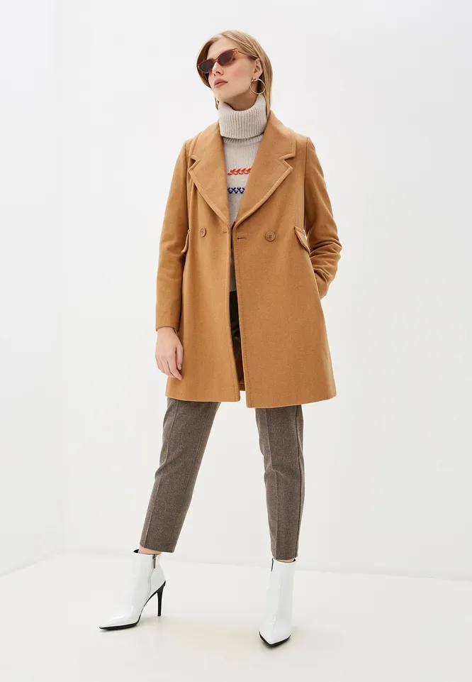 Если ты предпочитаешь модели покороче, то стильное пальто чуть ниже бедра модного оттенка camel подойдет идеально. Модель приталенного кроя, слегка расклешенная книзу, делает силуэт более женственным независимо от того, с чем ты ее сочетаешь. Универсальный оттенок и лаконичный дизайн дают возможность создавать множество смелых комбинаций — никаких ограничений, кроме собственной фантазии.
