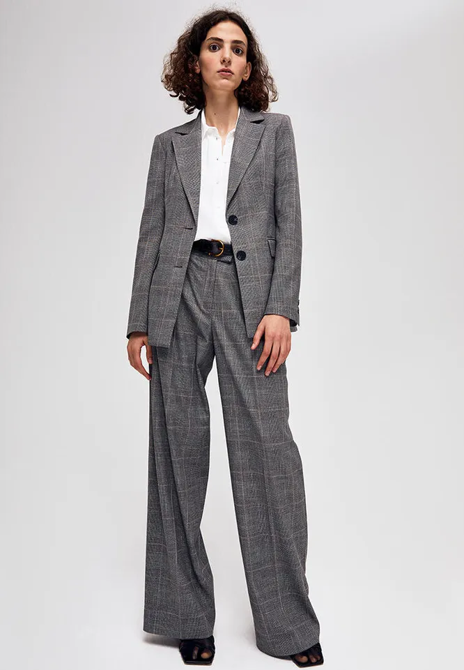Если ты большую часть времени проводишь в офисе, где действует строгий дресс-код, разбавить скучный рабочий гардероб тебе поможет костюм в клетку. Он выглядит достаточно сдержанно для того, чтобы не противоречить корпоративным требованиям, но при этом совсем не кажется скучным. Обрати внимание на модели с широкими брюками на высокой посадке — они не только придадут образу статусности, но и сделают тебя визуально выше и увереннее. Дополняй наряд удлиненным пиджаком с сильной линией плеч и вместительной сумочкой жесткой формы.