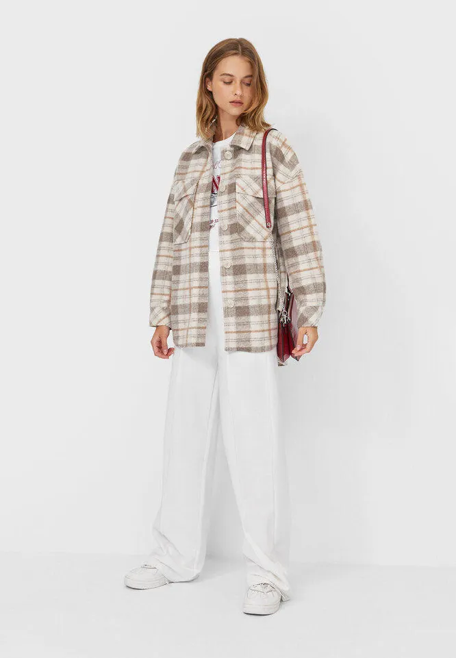 Завершает нашу подборку рубашка в клетку. Этот элемент гардероба уже стал настолько привычным, что, кажется, найдется в гардеробе у каждой девушки. Осенью и зимой отдай предпочтение моделям из более плотных тканей, которые не только отлично греют, но и хорошо держат форму. Такие рубашки могут не только выступать в качестве основного слоя, но и надеваться поверх водолазок, футболок или топов. Особенно интересно такая рубашка будет смотреться с трикотажным бралеттом, визуально компенсируя его смелый крой.