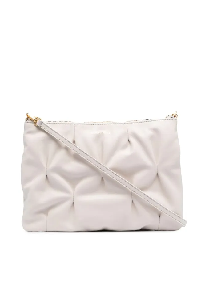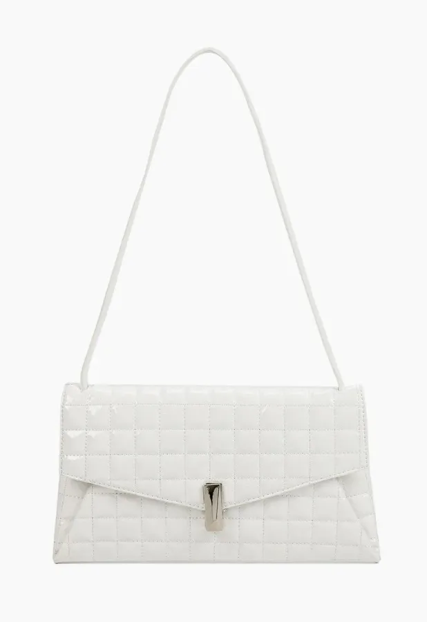 Белый клатч с мелкой квадратной стежкой органично впишется в деловые образы. Можно носить его с платьем-футляром или с романтичной блузкой и юбкой по фигуре.