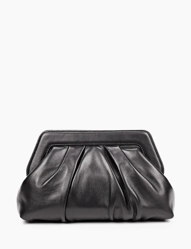Поклонницам классики и элегантности стоит обратить внимание на фактурный клатч из натуральной кожи со сборками и жестким каркасом.