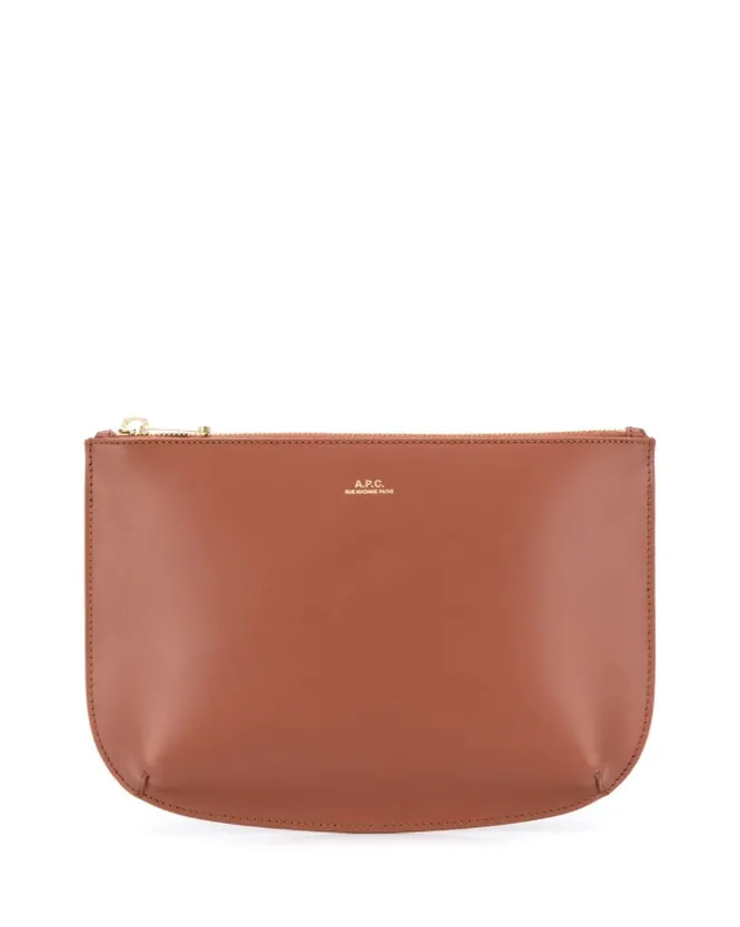 Универсальный вариант — небольшой коричневый клатч из натуральной кожи.