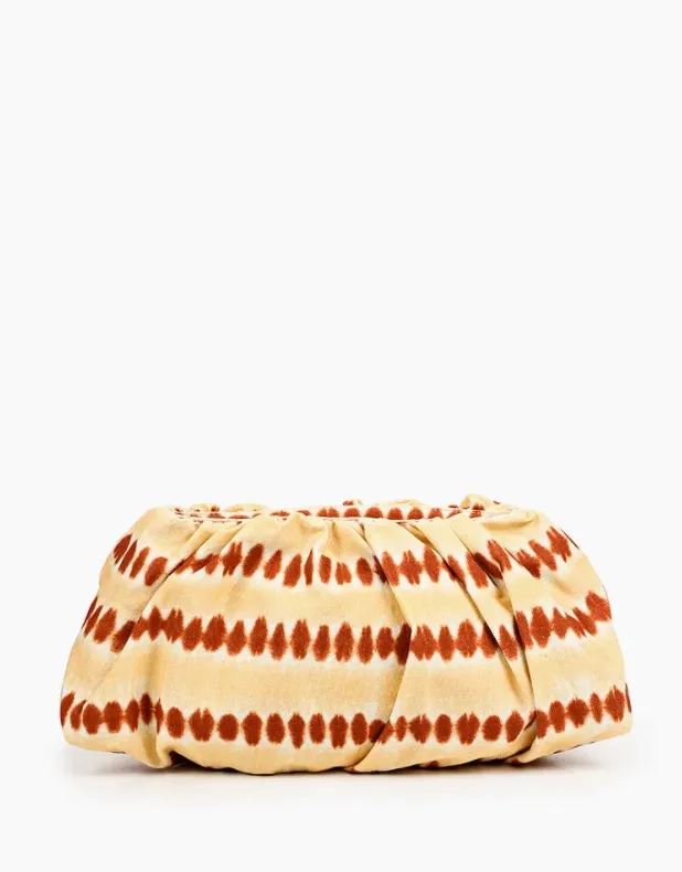 Для летних образов подойдет клатч-«пельмень» с ненавязчивым принтом.