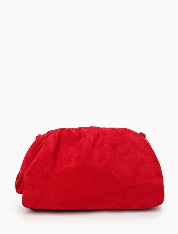 Если хочешь добавить аутфиту яркий акцент, выбирай красный клатч мягкой формы.