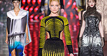Ставку на геометрические принты сделали дизайнеры Holly Fulton и Etro. О 3D-изображении они вспомнили также из практических соображений: оно визуально улучшает фигуру. Так, благодаря трехмерному эффекту, классическая мини-юбка с кубическим принтом от Holly Fulton визуально делает бедра более объемными. Etro создали «осиную талию», симметрично расположив полосы лимонного оттенка. Классический пейзаж и городские панорамы вдохновили Marni и Mary Katrantzou: подобными принтами они украсили платья в стиле baby doll и модели прямого силуэта.