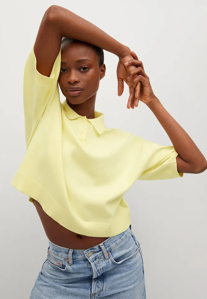 Универсальный вариант на каждый день — желтое поло свободного кроя. Стильно сочетается практически с любыми шортами, джинсами, юбками и расслабленными брюками.