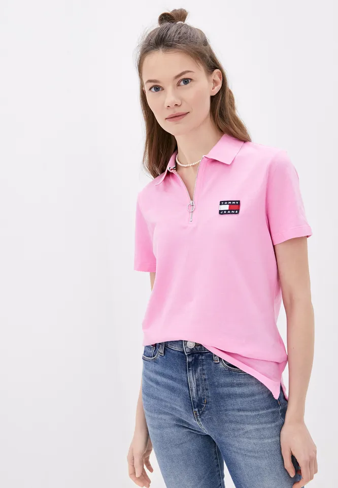 Также стоит обратить на розовое поло с молнией. К нему подойдут джинсы-бананы, юбка карго, шорты в спортивном стиле.