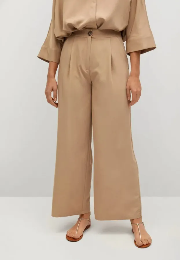 Для стильных минималистичных образов выбирай широкие структурированные брюки. К ним подойдет практически любая пара обуви и различные топы и блузы.