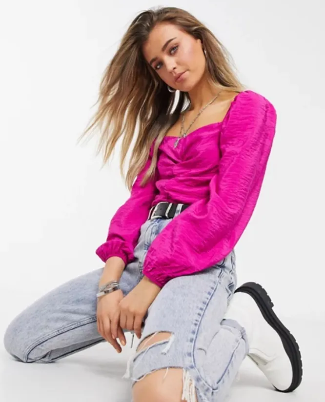 Для эффектных и ярких образов выбирай топ цвета фуксии. Можно носить его с контрастными по цвету и характеру вещами (например, с кожаной юбкой) или дополнять более сдержанными, нейтральными вещами.