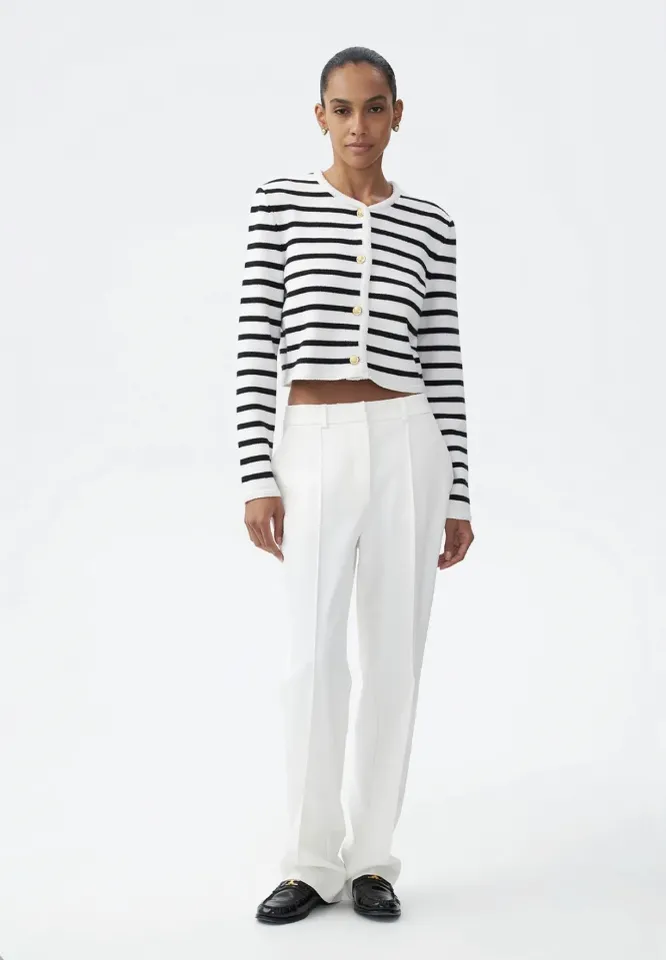 Для любительниц подчеркнуть фигуру идеально подойдет формула «низ на завышенной талии + укороченный верх». Что ж, с удовольствием будет пользоваться ею, тем более, в образах применяется она легко: будем комбинировать укороченный кардиган и топ (помним про многослойность) и любимые джинсы-трубы или классические брюки.