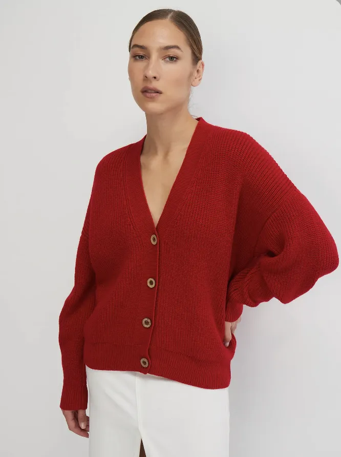 Такие стильные кардиганы удачно разбавляют мрачные зимние look’и в темных оттенках. Вот и лайфхак: в серый монохромный образ обязательно добавь красный кардиган — эти цвета действительно дополняют друг друга.