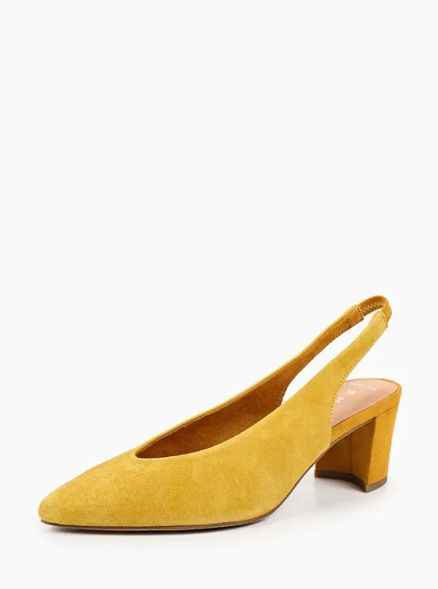 Желтые замшевые туфли можно носить и с легкими летними сарафанами, и со строгими костюмами, и с джинсовыми шортами.