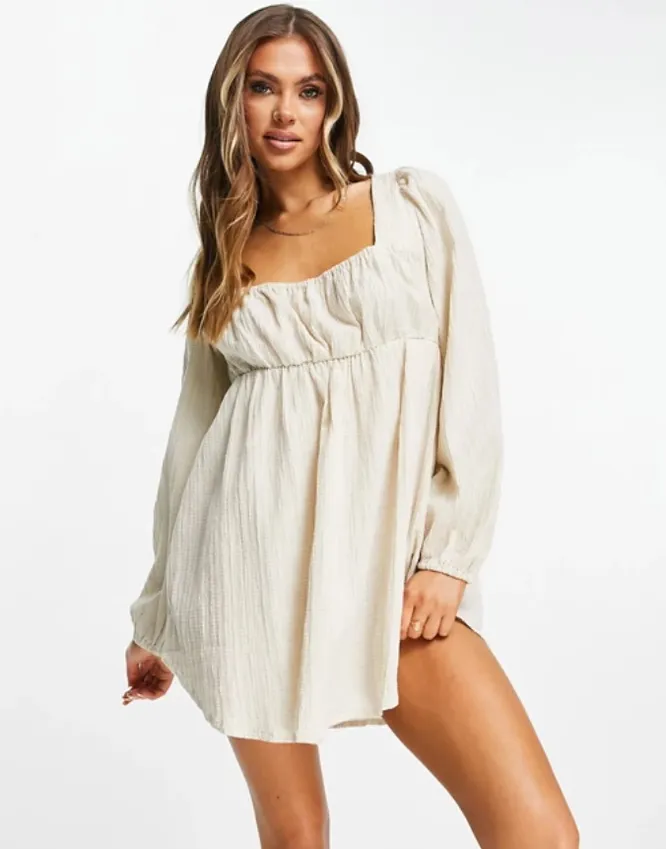 Трендовая модель — фактурная туника с квадратным вырезом и сборками, которые подчеркнут грудь. Носи ее с расклешенными джинсами и плетеной сумкой.