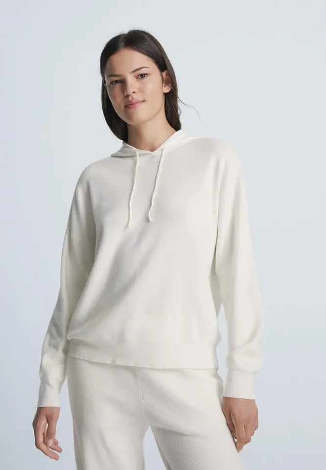 Тем, кто ищет что-то уютное и теплое, советуем примерить трикотажные толстовки. Их можно носить с трикотажными штанами и юбками (как мы это делали в прошлом сезоне) или составлять контрастные луки и сочетать их с кожаными брюками, грубыми джинсами или фактурными юбками.