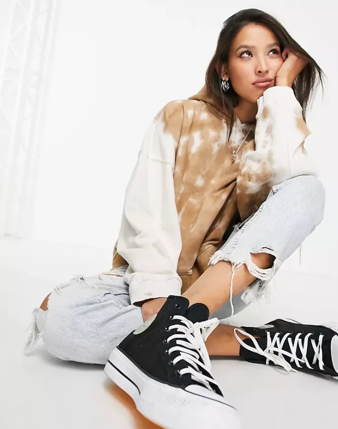 Если хочется добавить в образ красок, выбирай цветные свитшоты и худи. По-прежнему остаются актуальными пастельные тона (в особенности лавандовый цвет), насыщенный желтый и зеленый, небесно-голубой и бордовый.