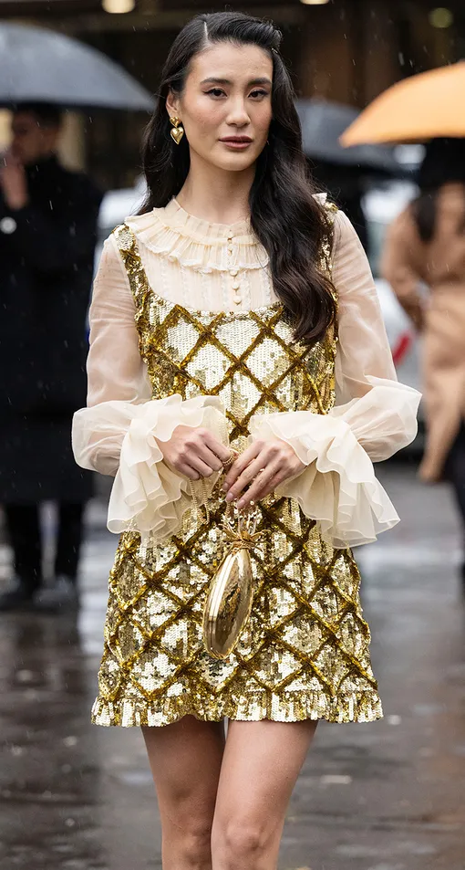 В целом, золотой мог бы вписаться в блок к желтым оттенкам, но мы все-таки вынесем его отдельно. Потому что золото – отдельная тема и отдельное поле для модных экспериментов. Тотал-look в бронзе, меди или чистом золоте, пайетки в металлике, золотая фурнитура – на вечеринке все можно (и нужно) использовать на максимум!