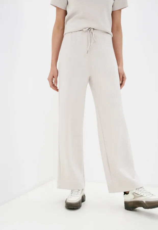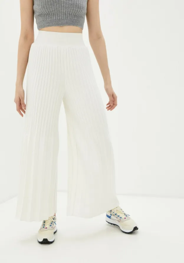 Свободные трикотажные брюки в рубчик – отличная основа для комфортных повседневных образов. Сочетай их с пастельным свитшотом и массивными кроссовками.
