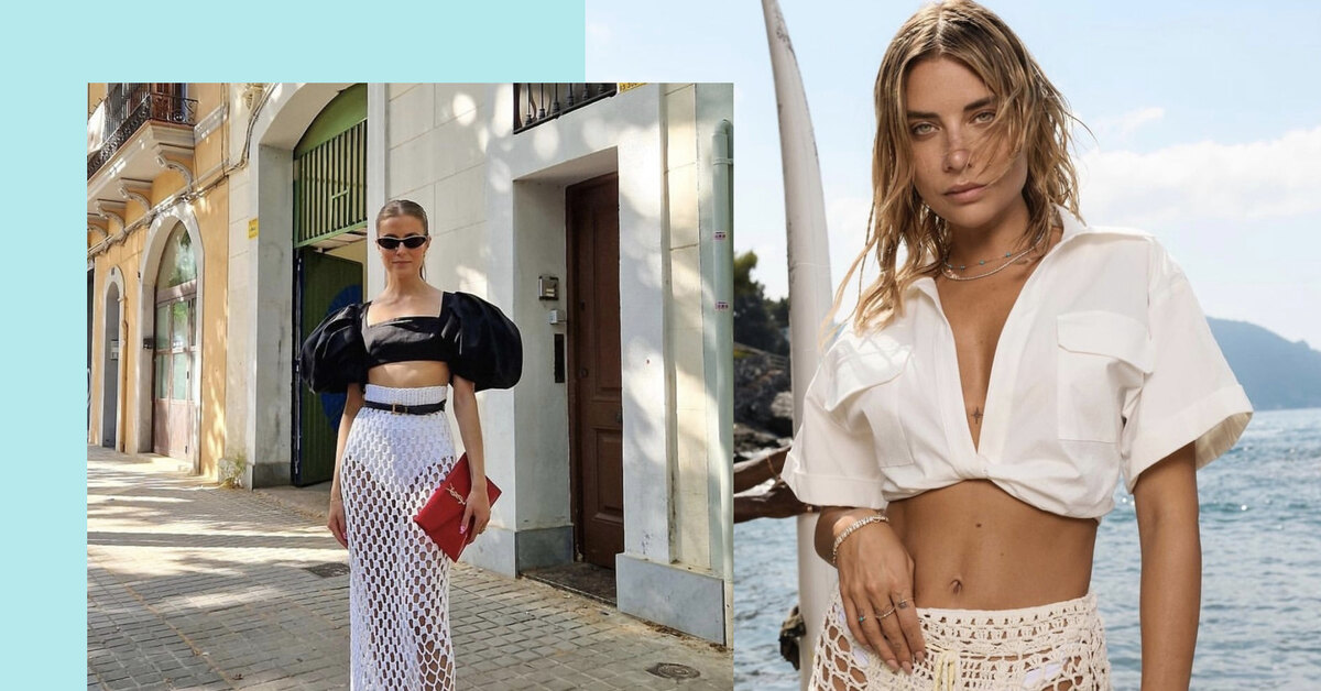 Предупредим сразу: этим летом выбираем белую юбку, связанную крючком. Обязательно макси. Смотрится так, будто богини пляжного отдыха собрались, подумали и изобрели самый модный отпускной образ. Фэшн-следствие ведет норвежская модница Нина Сандбех, и мы видим, что в поиске эффектного пляжного аутфита она преуспела. Белая сетка, монокини в тон, серьги-морские звезды и зеленые мюли — если есть идеальный отпускной образ, то Нина его собрала.