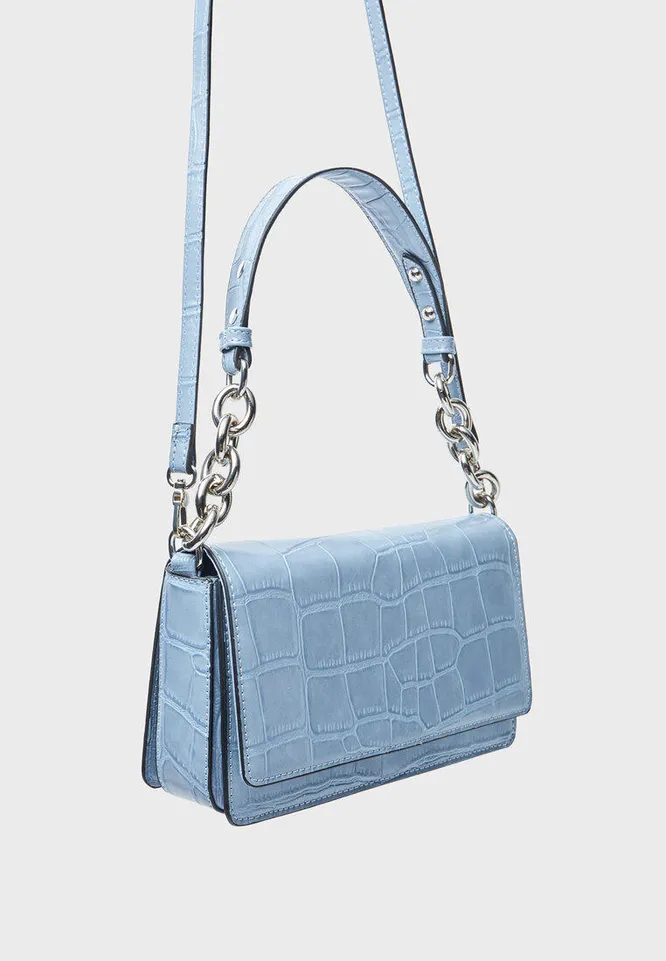 Фактурная сумка с тиснением под кожу крокодила станет завершающей деталью в аутфите и сделает его более сложным.