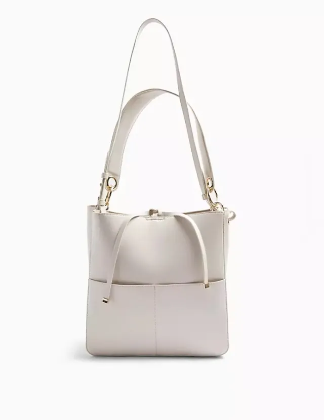 Минималистичная кремовая сумка-тоут органично дополнит расслабленные аутфиты с оверсайз-рубашками и широкими брюками, костюмами-двойками мужского покроя, летящими платьями макси.