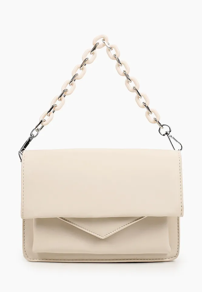 Освежить осенние луки поможет светлая сумка на комбинированной цепочке. Она одинаково хорошо смотрится как с кожаными куртками, так и с женственными пальто и тренчами.