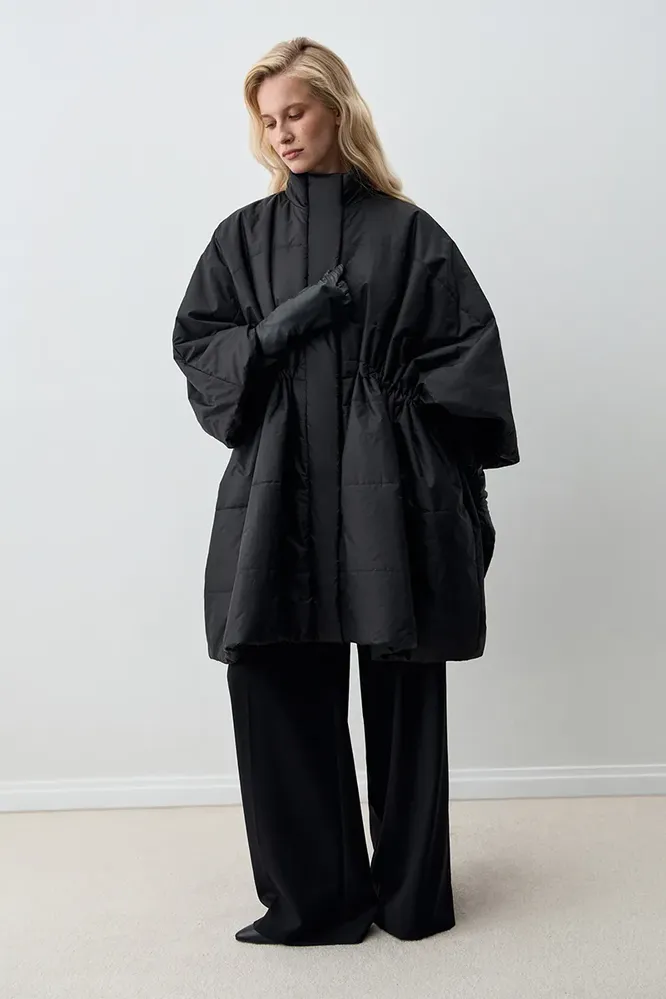 Именно поэтому, если ты прямо сейчас ищешь обновки для осенне-зимнего гардероба, от души советуем примерить верхнюю одежду в стиле джапанди. Это может быть шерстяное пальто с деконструкцией, теплый пуховик-бомбер с воротником-стойкой (защита от ветра, между прочим!) или стеганое пончо с мягкими покатыми плечами – эффект в любом случае будет отличный. Говорим по опыту.
